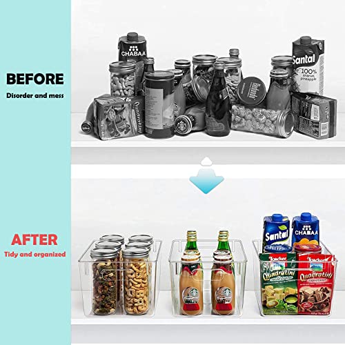 HPYLIF·H - منظم ثلاجة مزود بمقابض، صناديق تنظيم مؤن شفافة، سلة تخزين طعام للمطبخ وأسطح الطاولات والدواليب والثلاجة والفريزر وغرف النوم والحمامات، 4 قطع، مقاس 29 × 20 × 15.5 سم