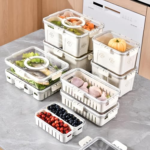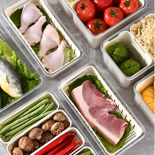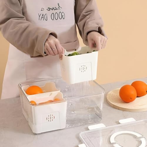 - تتميز صناديق تخزين الثلاجة بسلة تصريف مدمجة تزيل الرطوبة الزائدة من الفواكه والخضروات بشكل فعال، وتمنع الرطوبة وتطيل النضارة مع الحفاظ على نظافة الجزء الداخلي.