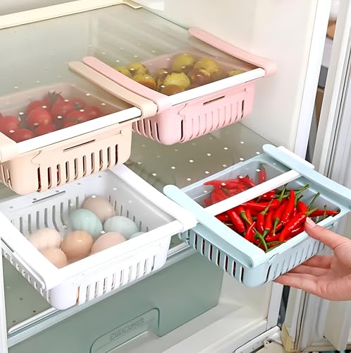 Generic - حل تخزين الثلاجة، صينية بلاستيكية قابلة للتعديل لتنظيم الطعام، متوفرة بألوان متعددة - عزز كفاءة تخزين مطبخك