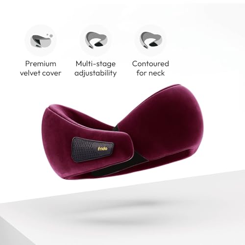 Frido - مخدة رقبة للسفر من الفوم عالي الأداء بنسبة 100% خفيفة الوزن بتقنية الميموري فوم وبأشرطة فليكرو قابلة للتعديل للسفر بالطائرة والسيارة مع شنطة سفر مجانية من فريدو، نبيذي