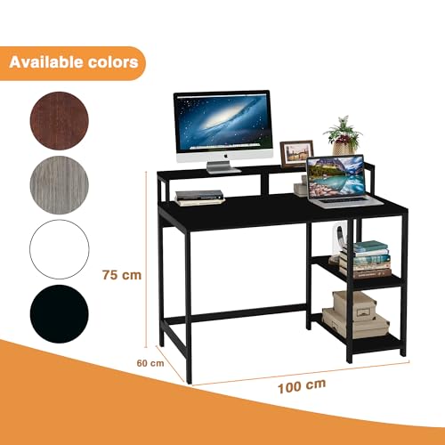 Friends Metaly - مكتب كمبيوتر معدني سهل التجميع برفين وتصميم عملي للكتابة والدراسة والعمل في المنزل والمكتب من فريندز، رمادي، 60 سم × 100 سم × 75 سم (العمق × العرض × الارتفاع)