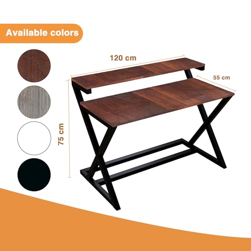 Friends Metaly - ترابيزة دراسة خشبية هندسية معدنية مع رف للمنزل والمكتب، ترابيزة دراسة حديثة وكتابة للطلاب من فريندز (أبيض، 55 سم عمق × 1.20 متر عرض × 75 ارتفاع)
