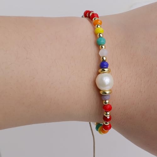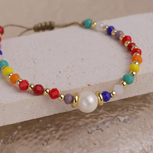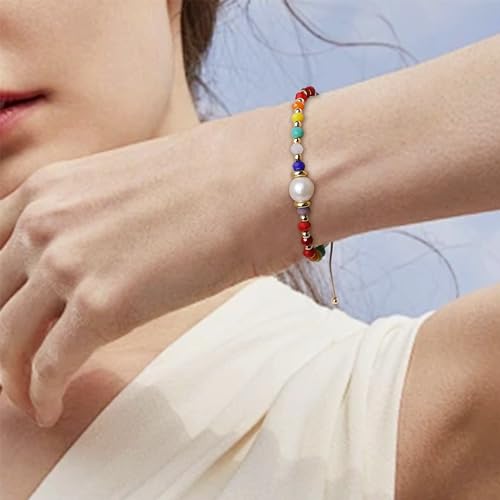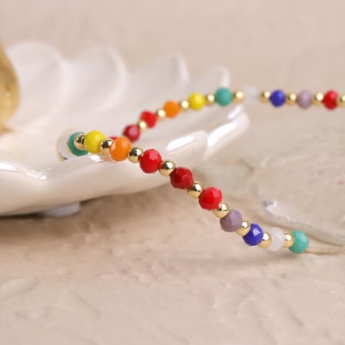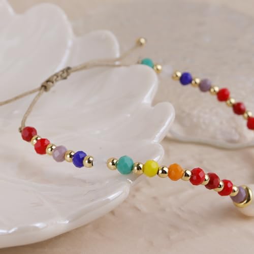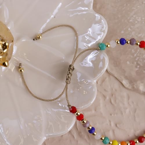 generic - اساور كريستال علاجية بالوان قوس قزح قابلة للتعديل للنساء من فريجوتين، احجار كريمة ملونة طبيعية ومزينة بخرز للشاطئ وركوب الامواج، هدايا مجوهرات صيفية