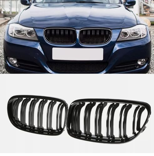 Generic - شبكة سيارة أمامية شرائح مزدوجة باللون الأسود اللامع متوافقة مع بي إم دبليو الفئة الثالثة E90/E91 موديلات 2009-2011 | غطاء شبكة كلوية | مجموعة من قطعتين | تركيب مباشر