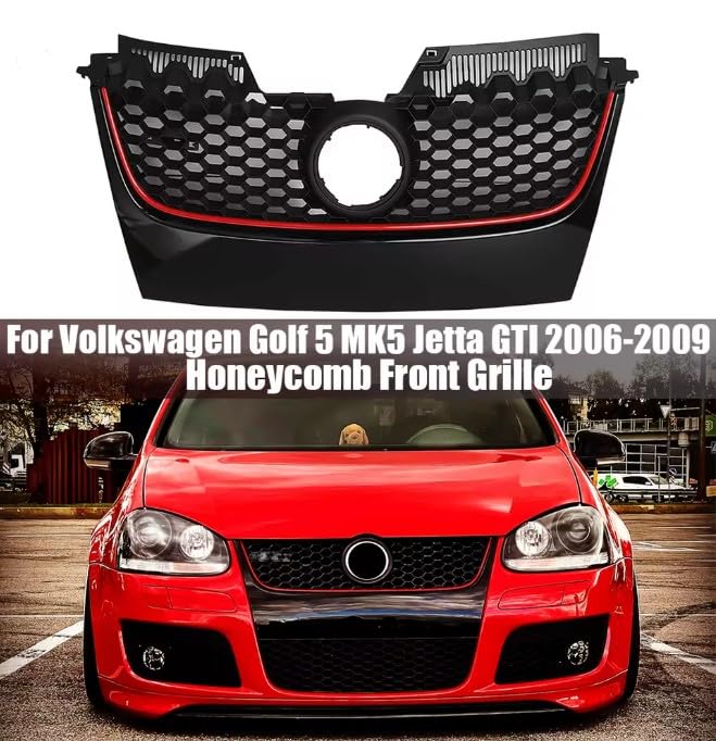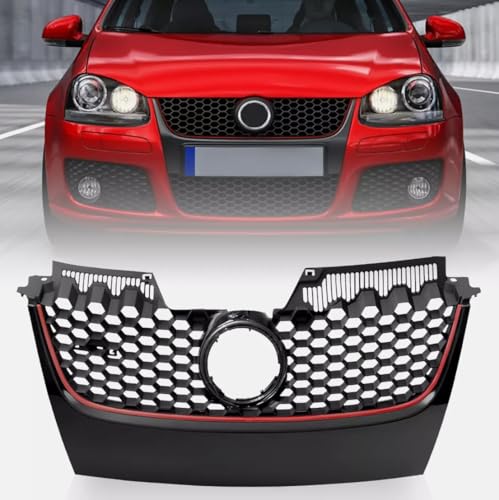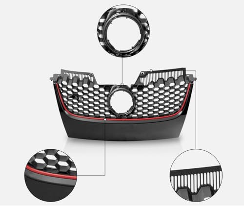 Generic - شبكة امامية علوية متوافقة مع فولكس فاجن جيتا/جولف جي تي اي (2006-2009) | نمط رياضي اسود مع حواف حمراء | تناسب اوروبا/GLI/TDI/تريندلاين/فولفسبورغ/S/SE/SEL | قطعة واحدة | طلاء جاهز للتركيب