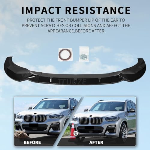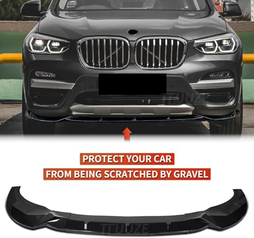 Generic - سبويلر أمامي ( كساحة سيارة ) للمصد السفلي باللون الأسود اللامع متوافق مع بي إم دبليو X3 G01 / X4 G02 (2018-2021) M Pack | مناسب لنسخ xDrive/sDrive 30i، 35i، 20d، M40i | تصميم رياضي | تركيب مباشر