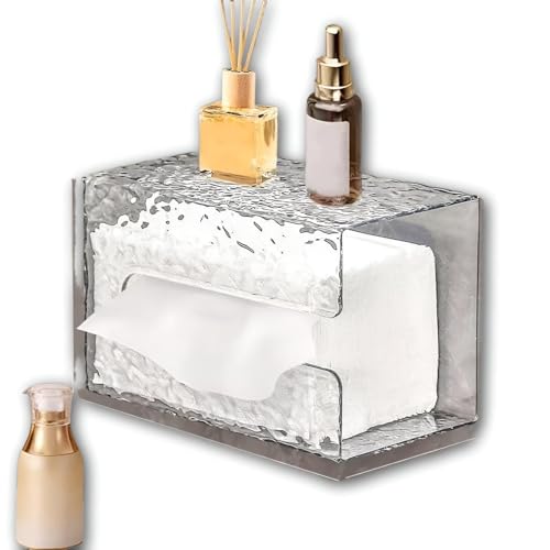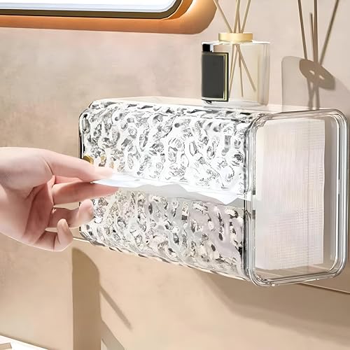 - يتميز حامل المناديل هذا بتصميم فاخر أنيق مصنوع من زجاج مموج عالي الجودة مع لمسة نهائية من الكريستال الشفاف، مما يضيف لمسة عصرية وأنيقة إلى جماليات الحمام مع ضمان المتانة ومقاومة التعرض للرطوبة اليومي.