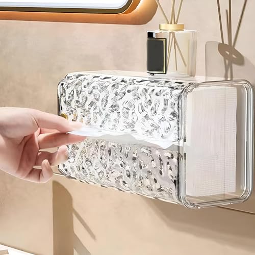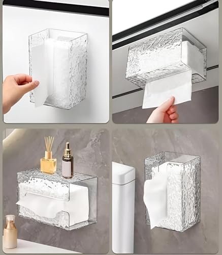 - بفضل تصميمه المضلع المصنفر الشفاف، لا يوفر حامل المناديل المثبت على الحائط حلاً عمليًا للتخزين فحسب، بل يرفع أيضًا المظهر العام للحمام، ويمزج العملية مع النمط الفني الحديث.