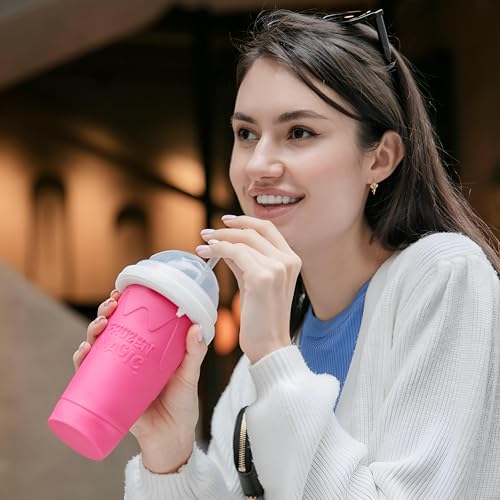 Generic - مج تبريد المشروبات والسلاش اللذيذ والميلك شيك في المنزل مصنوع من السيليكون القابل لإعادة الاستخدام لحفظ درجات الحرارة الباردة لللمشروبات للاستمتاع بمشروبك (لون وردي، حجم واحد)