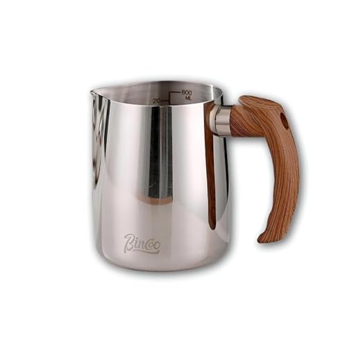 - صُنع من فولاذ مقاوم للصدأ 304 متين مع مقبض خشبي، هذا الإبريق المخصص لتبخير الحليب مقاوم للصدأ ومقاوم للبقع ومقاوم للحرارة. يضمن هيكله أداءً يدوم طويلاً مع الحفاظ على مظهر أنيق واحترافي سهل التنظيف بعد كل استخدام دون فقدان بريقه أو جودته.