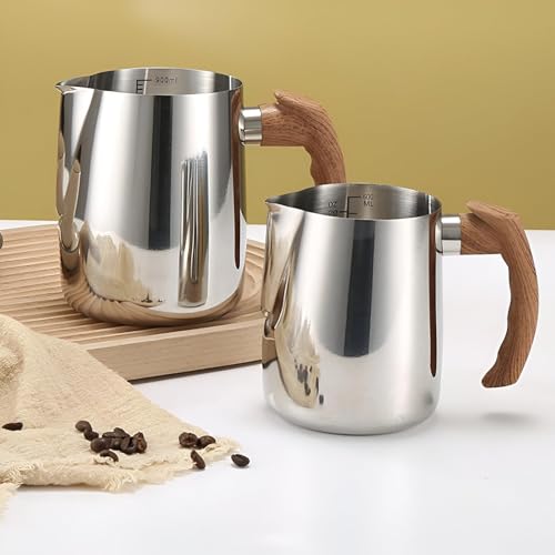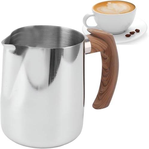 - مصنوع من الستانلس ستيل 304 المتين مع مقبض خشبي، إبريق صنع رغوة الحليب هذا مقاوم للصدأ والبقع ومقاوم للحرارة. يضمن هيكله أداءً يدوم طويلاً مع الحفاظ على مظهر أنيق واحترافي سهل التنظيف بعد كل استخدام دون أن يفقد لمعانه أو جودته.