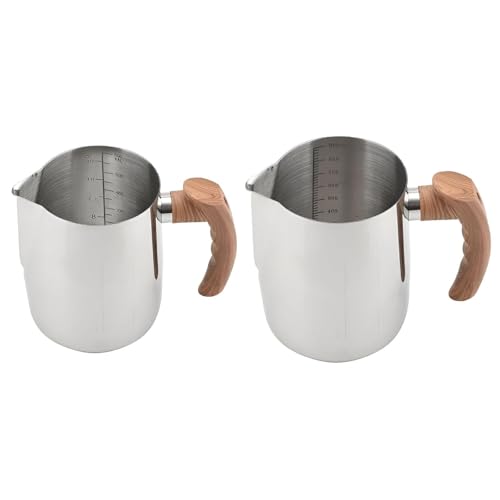 Generic - ابريق رغوة - حاوية متينة من الستانلس ستيل مع علامات قياس وفم مدبب لسهولة الصب، تصميم انيق للكابتشينو وفن رغوة اللاتيه والحليب الساخن وابداعات المشروبات الكريمية، 600 مل (قطعة 2)