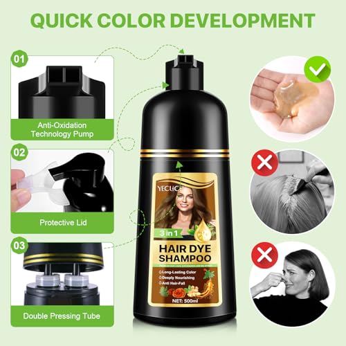 - صبغة شعر آمنة 3 في 1: على عكس صبغات الشعر الملوثة بالمواد الكيميائية الأخرى، فإن شامبو صبغ الشعر السحري هذا خالٍ من الأمونيا والبارابين ولا يحتوي على مواد كيميائية قاسية، بينما يصبغ وينظف ويغذي شعرك. شامبو صبغة الشعر الخفيف يهدئ فروة رأسك ويعزز نمو الشعر الصحي ويحافظ على الحيوية العامة.