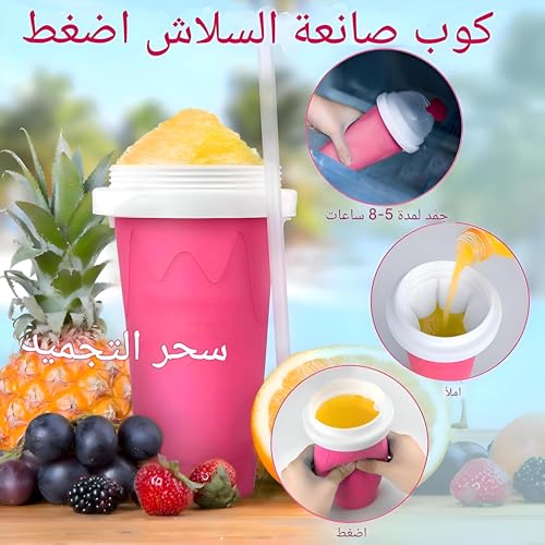 - تم تصميم ماكينة صنع السلاشي هذه مع كوب سيليكون سهل الاستخدام يسمح لك بإعداد المشروبات المجمدة مثل الحلويات أو اللبن المخفوق أو الآيس كريم بسرعة دون أي معدات خاصة، ببساطة عن طريق التجميد وإضافة المكونات والتحريك في 5-8 دقائق فقط.