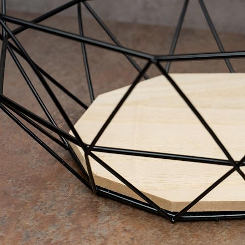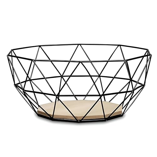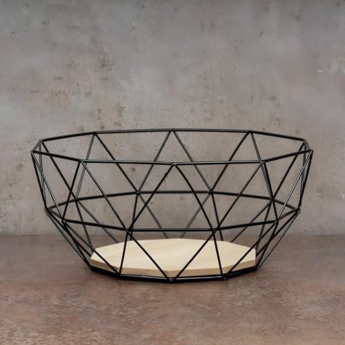 Generic - سلة فاكهة بتصميم عصري وأنيق مصنوعة من إطار معدني صلب وقاعدة خشبية طبيعية، مناسبة لتزيين المطبخ أو عرضها على طاولة الطعام أو لتقديم الفواكه أو لتلبية احتياجات التخزين