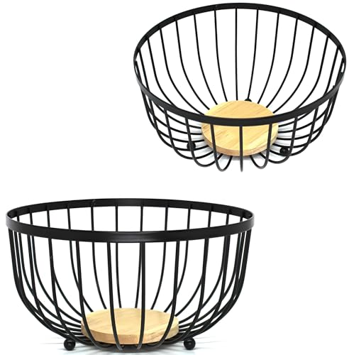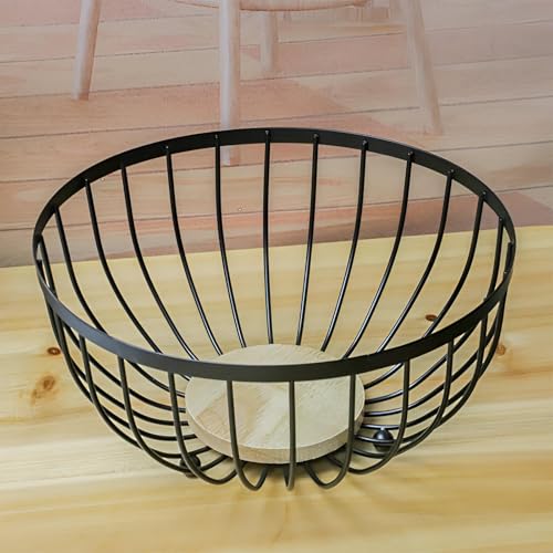 Generic - سلة الفاكهة - تصميم أسلاك الحديد الحديثة مع قاعدة خشبية ، مثالية لتخزين الفواكه والخضروات والوجبات الخفيفة والخبز ، يعزز الديكور المنزلي بلمسة أنيقة