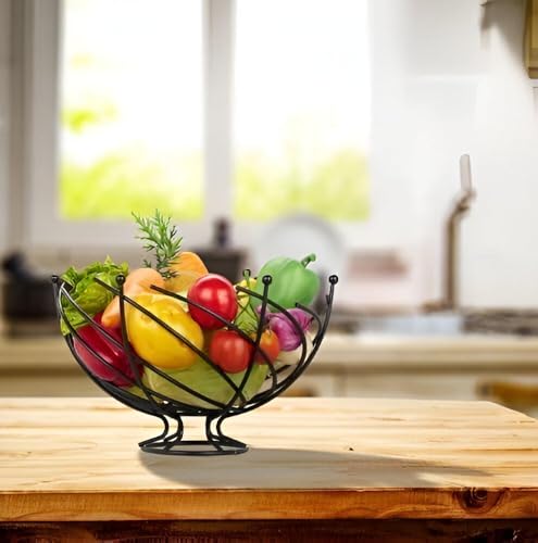 - تقديم أنيق: سلة الفاكهة السوداء السلكية هذه توفر طريقة أنيقة لتقديم الفاكهة الطازجة بفضل تصميمها المنحني الأنيق والمقبض لسهولة الحمل.