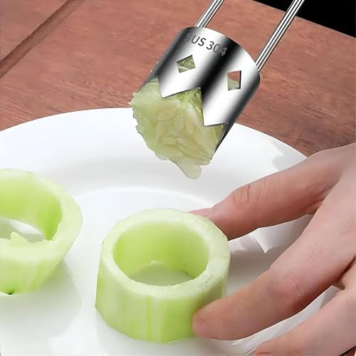 - 【مقوار قلب فاكهة عالمي من الفولاذ المقاوم للصدأ】يزيل مقوار الفاكهة هذا النوى بسرعة وسهولة. يمكن استخدامه أيضًا لتحضير الأطباق مثل حشو الكوسة، مما يجعله أداة متعددة الاستخدامات لمطبخك.