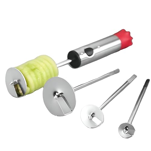 - تتضمن هذه المجموعة متعددة الاستخدامات أربعة رؤوس تقطيع قابلة للتبديل مصنوعة من الفولاذ المقاوم للصدأ، مصممة لمجموعة واسعة من الفواكه والخضراوات، من التفاح والكمثرى إلى الخيار والكوسة، مما يتيح إزالة النواة بدقة وتقطيعًا متساويًا بأقل جهد.