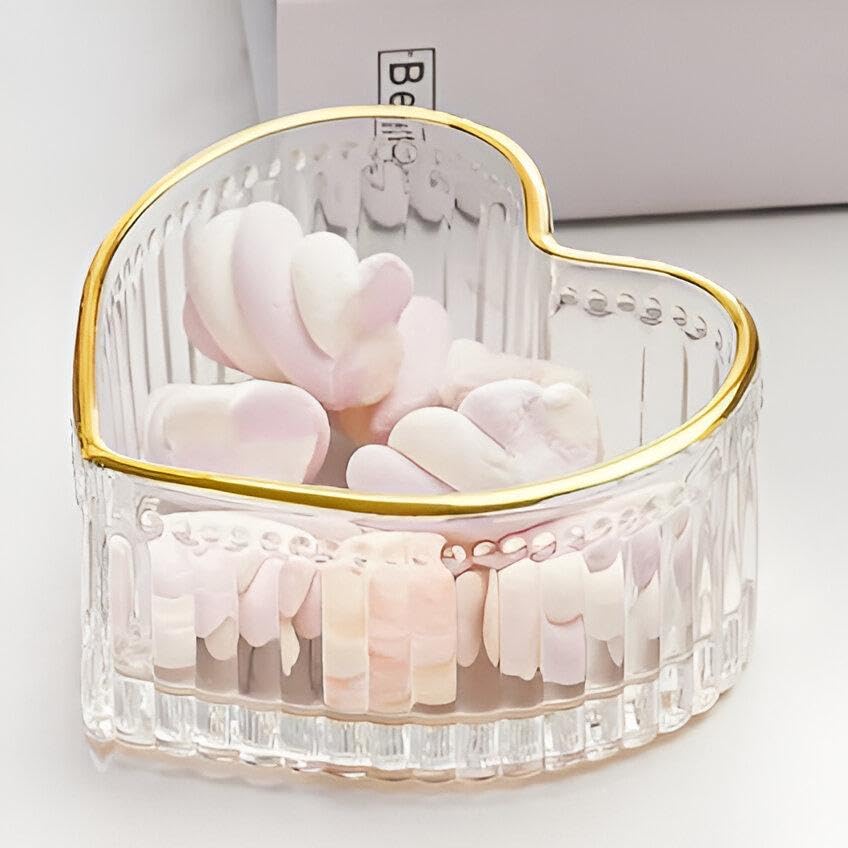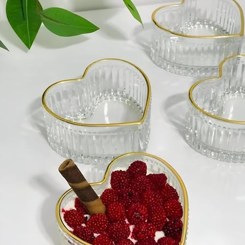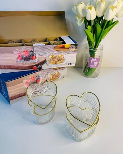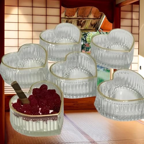 Generic - أطباق فواكه - 6 أطباق عميقة زجاجية على شكل قلب مع إطار ذهبي لتقديم الفواكه والحلوى والسوشي والوجبات الخفيفة بأناقة