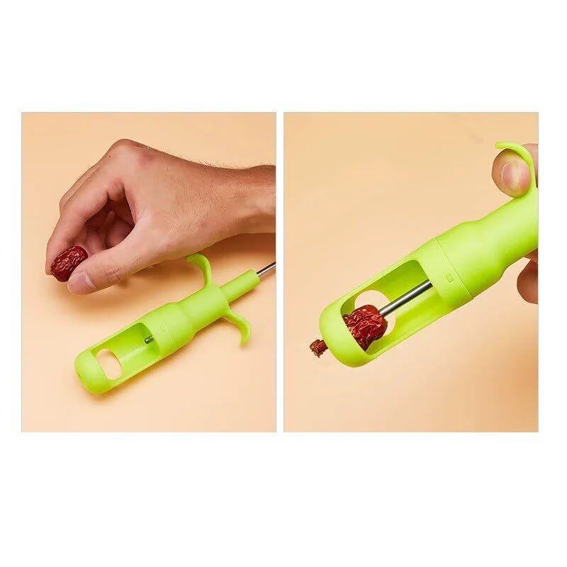 Generic - مزيل بذور الفاكهة، مزيل بذور الزيتون، مزيل قشر التمر والكرز، مزيل بذور الزيتون صغير محمول متعدد الوظائف للمطبخ (اخضر)