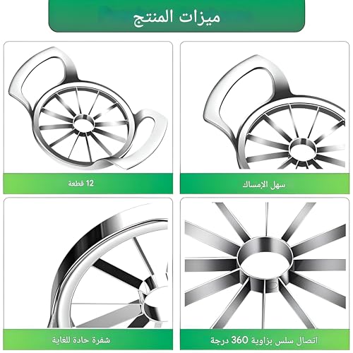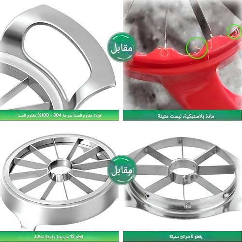 - ✅قطاعة التفاح ذات 12 شفرة: قم بترقية قطاعة التفاح الخاصة بك بأحدث تصميم من 12 شفرة! تتميز كل شفرة بلحام معزز 360 درجة لقوة ومتانة لا مثيل لها. إنه أقوى بشكل واضح من الموديلات السابقة. مصنوعة من الستانلس ستيل 304 الممتاز، توفر الشفرات تقطيع بدون مجهود ودقة حادة للغاية. استمتع بأوتاد موحدة بشكل مثالي مع كل استخدام. قم بترقية مطبخك وتجربة تناول التفاح الخاصة بك مع هذه الأداة التي يجب اقتناؤها!