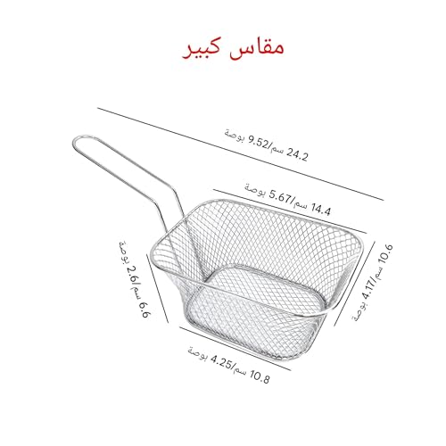 - مصنوعة من صلب الكروم عالي الجودة، سلال القلي الصغيرة هذه متينة ومقاومة للتآكل والحرارة، مما يضمن التعامل الآمن مع الأطعمة الساخنة. هيكلها القوي يجعلها مثالية لكل من المطابخ المنزلية وخدمات الطعام التجارية، مما يوفر طول العمر والموثوقية.