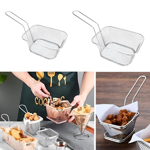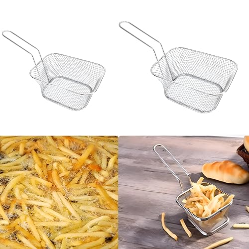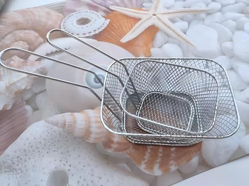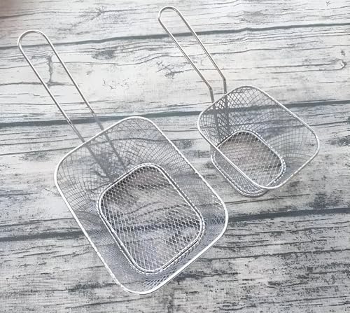 Generic - سلة شبكية للقلي، تصميم فضي صغير مع حامل مربع للتصفية من الفولاذ المقاوم للصدأ، للمطاعم وحفلات الشواءوالمطبخ والتقديم في المناسبات (مجموعة من قطعتين)