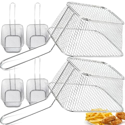 - مصممة لسهولة الاستخدام، تتميز سلال القلي هذه بمقابض مريحة تسمح بقبضة قوية وإزالة يسيرة من الزيت الساخن. يسهل التصميم الشبكي التنظيف الفعال ويمكن غسلها بأمان في غسالة الأطباق. كما أنها تدعم التثبيت على الحائط للتخزين المريح.