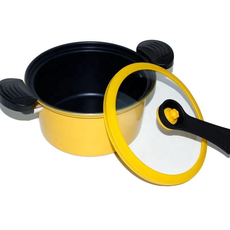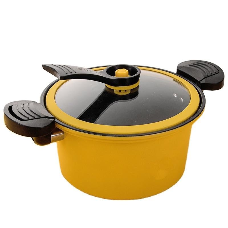 Generic - مقلاة مع مقبض وغطاء 3.5 لتر، وعاء طهي غير لاصق للاستخدام في الاماكن المغلقة والمفتوحة، مقلاة مطبخ صحية منخفضة الدسم، 22 سم، ادوات طبخ سهلة التنظيف، مقبض مقاوم للحرارة