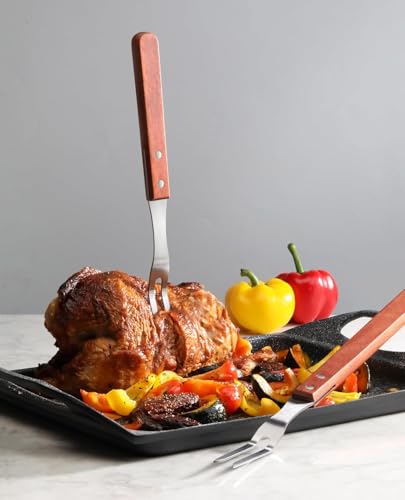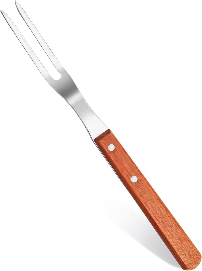 Generic - شوكة قلي وشوي من الستانلس ستيل بمقبض خشبي بطول 36 سم، ادوات مطبخ لقلي اللحوم وتناول الطعام