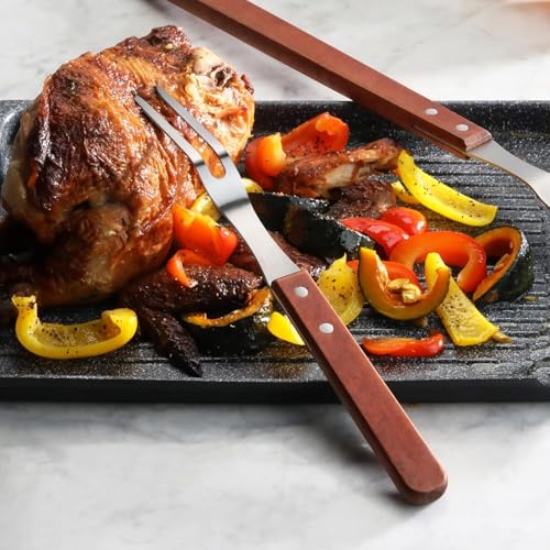 - هيكل قوي من الستانلس ستيل يقاوم الانحناء والتلف، مما يمنحك شوكة موثوقة تتعامل مع اللحوم الثقيلة والطعام الساخن دون أن تفقد شكلها.