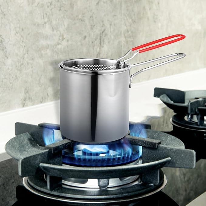 Generic - سلة القلي وحلة القلي وطقم أدوات القلي، وعاء قلي الروبيان - يمكن استخدام سلة القلي هذه لطهي رقائق البطاطس والخضروات والروبيان واللحوم قطعة واحدة
