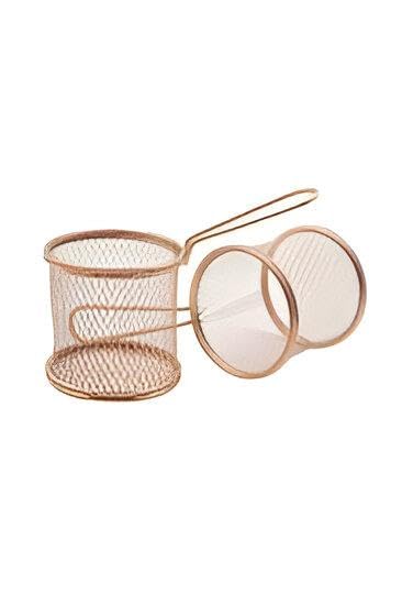 - مصممة بهيكل شبكي دقيق، سلة الطاسة هذه مثالية لغسل وتصفية الأطعمة المقلية، مثل البطاطس والوجبات الخفيفة. يسمح التصميم الشبكي بتصريف الزيت بكفاءة، مما يجعل الأطعمة المقلية أكثر قرمشة وأقل دهنية.