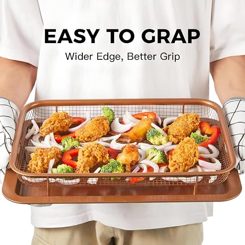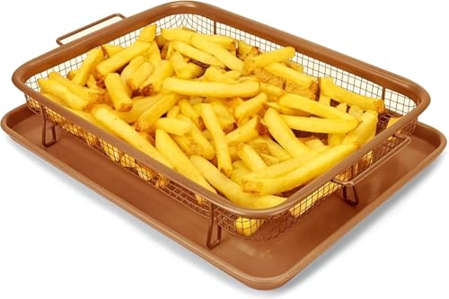 Generic - صينية القلي، مقلاة القلي، مصفاة الزيت، سلة فرن المقلاة الهوائية، صينية خبز مقرمشة مع صينية خبز، مجموعة سلة المقلاة الهوائية المكونة من قطعتين، 32.5 × 24 سم، مثالية للأطباق المقرمشة واللذيذة