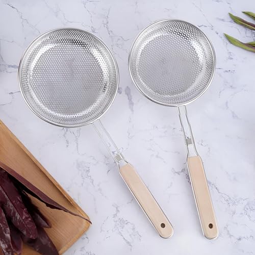 Generic - مصفاة تقديم طعام متينة بمقبض خشبي مريح مثالية لتقديم الأطباق المقلية بسهولة - قطعتين