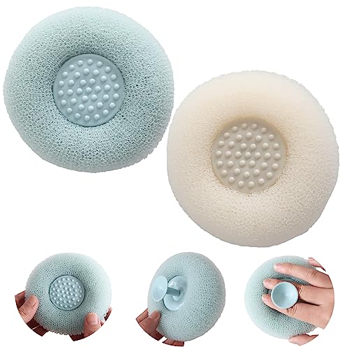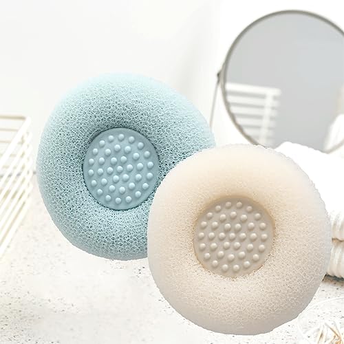FSZMan - قطعة فنية لطيفة بقاعدة لاصقة من اف اس زد مان، فرشاة تنظيف اسفنجية للحمام، فرشاة تنظيف اسفنجية فائقة النعومة للتقشير، كرات اسفنجية للحمام للتدليك (ازرق + اصفر)