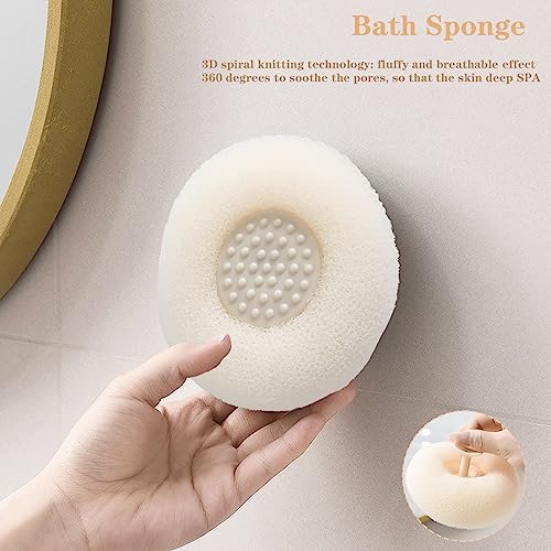 - 【رغوة سهلة】تنتج كرة الاستحمام الإسفنجية رغوة غنية وتوفر 20% من كمية غسول الجسم المستخدمة عند استخدامها مع أي غسول للجسم أو جل استحمام.