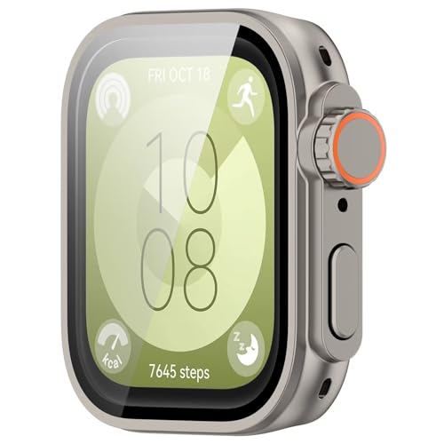 FTRONGRT - حافظة حماية من فترونجرت للساعات الذكية، غطاء مصنوع من البولي كربونات والزجاج المقوى بلون تيتانيوم ستيل