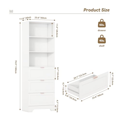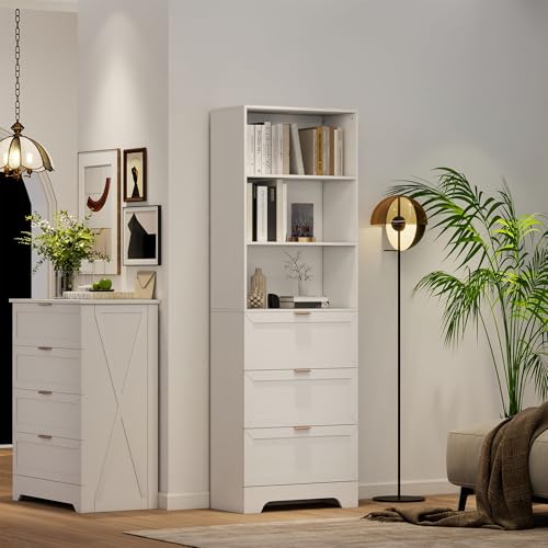 FTZxHKLX - رف كتب أبيض عصري بطول 1.8 م من FTZxHKLX، مع 3 أدراج للتخزين، رف كتب طويل مع منظمات للتخزين، صندوق عرض للمنزل والمكتب وغرفة المعيشة والدراسة، أبيض
