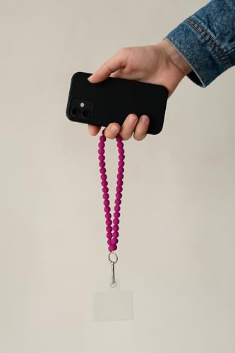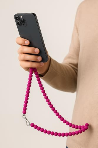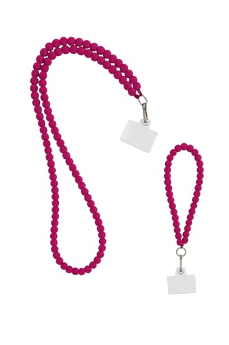 Generic - سلسلة موبايل خرز فوشيا، قطعتين قصيرة وطويلة، استخدام مزدوج، مع حلقات معدنية وبطاقة تثبيت