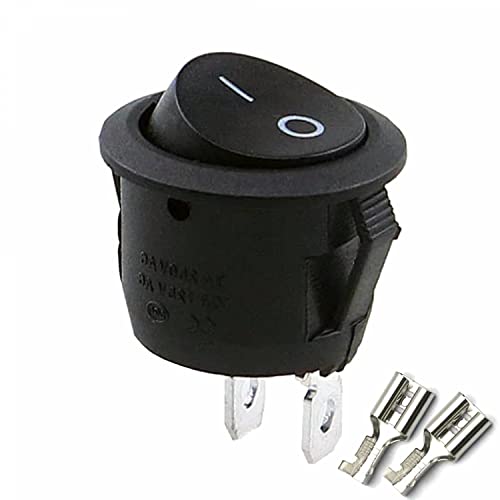 fuchswerk - مفتاح روكر روكر 2 دبوس دائري احمر اسود ابيض تشغيل/ايقاف 6 امبير / 250 فولت زر ضغط بلاستيكي للسيارة | اسود