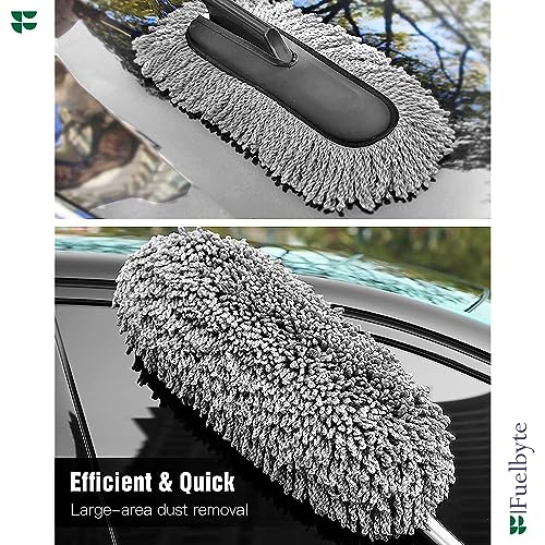 Fuelbyte - منفضة غبار سيارة مايكروفايبر فائقة النعومة مع مقبض وفرشاة تنظيف سيارة لمجموعة غسيل سيارات رطبة وجافة، فرشاة تنظيف غبار السيارة، ملحقات السيارة، مجموعة تنظيف السيارة من الخارج والداخل من فيولبايت