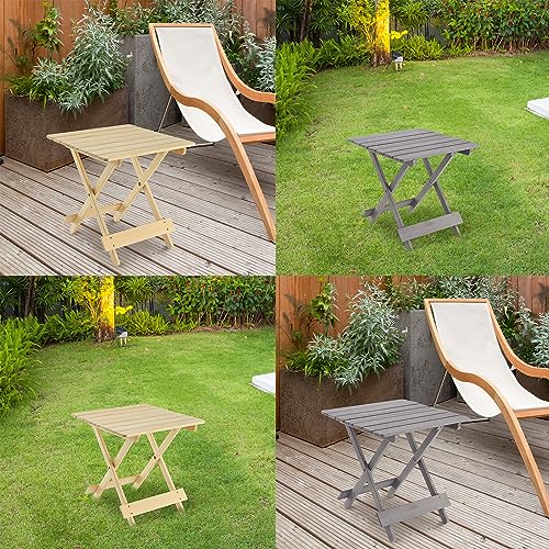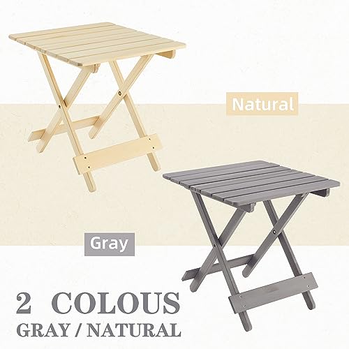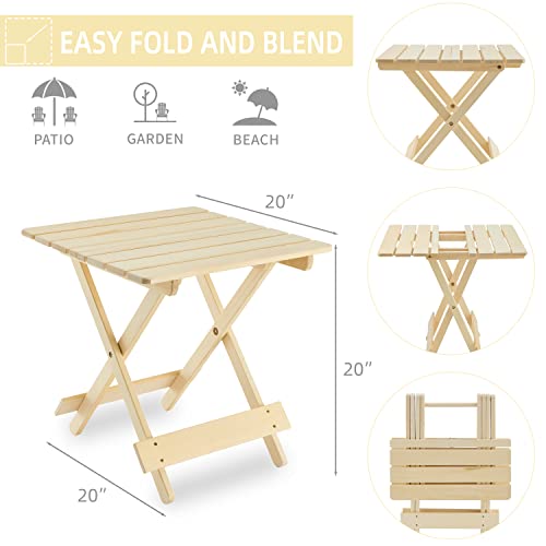 Fuhomtre - طاولة فناء خشبية طبيعية من فوهومتر، طاولة جانبية خشبية قابلة للطي، طاولة قهوة للاستخدام في الهواء الطلق، سهلة الحمل، مناسبة للسفر والفناء والمنزل (19.69 انش × 19.29 انش × 19.69 انش)