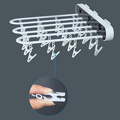 - ❤【جودة ممتازة】- رف تجفيف الغسيل مصنوع من مادة ABS، آمن وصديق للبيئة وقوي ومتين. يمكن لشماعة الغسيل المزودة بـ 24 مشبك أن تجف في الهواء أو تنقيط بسرعة وبشكل كامل مثل الجوارب وملابس الأطفال وحفاضات القماش وحمالات الصدر والملابس الداخلية، وشيء من هذا القبيل. الخطاف المقاوم للرياح الموجود أعلى رف التجفيف للتأكد من تعليقه حول القضيب بإحكام، حتى في الخارج في الأيام العاصفة.