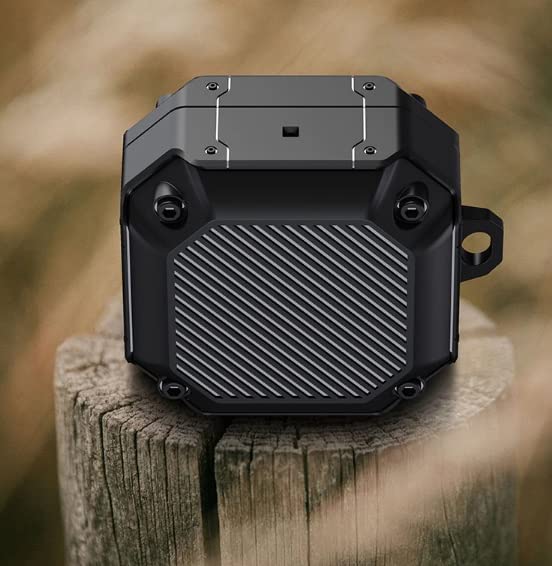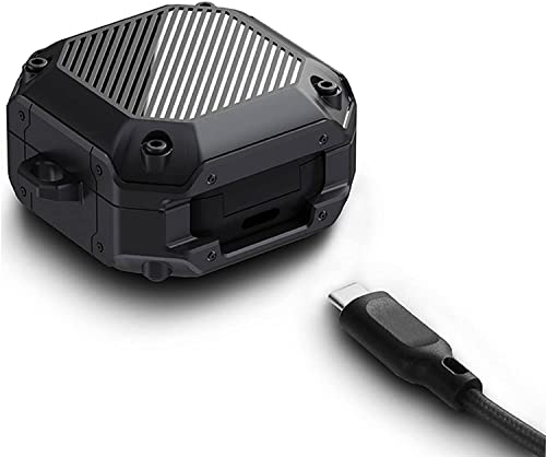 Generic - جراب واقي كامل متين متوافق مع سامسونج جالاكسي بودز 2 2021 - برو - لايف 2020 سلسلة مفاتيح لعبوة شحن سماعات الاذن اللاسلكية من أسود معدن