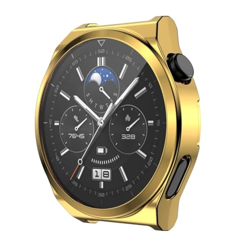 ELMO3EZZ - جراب واقي بلاستيكي بحماية كاملة من الموعز متوافق مع ساعة هواوي ووتش برو 46 ملم ومصنوع البولي يوريثين الحراري ذهبي