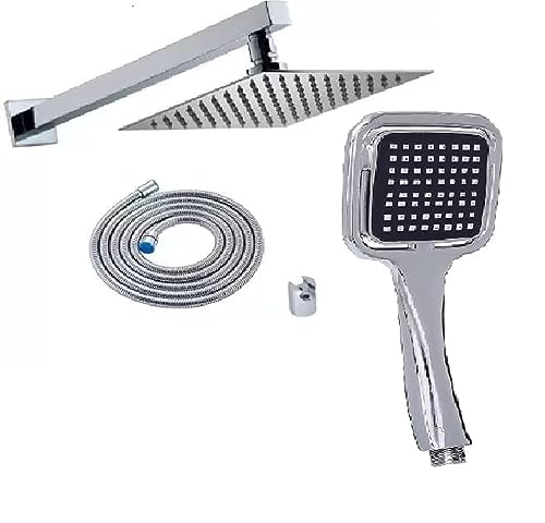 Generic - طقم رأس دش كامل بيد من الستانلس ستيل مقاس 30 × 30 مع يد وخرطوم وخطاف