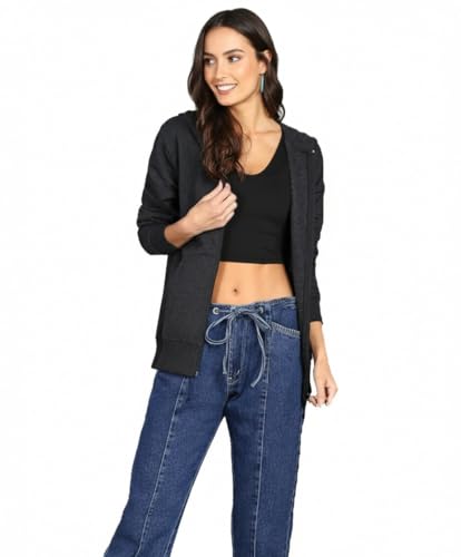 Generic - سويت شيرت بغطاء للرأس وسحاب كامل للنساء، اسود