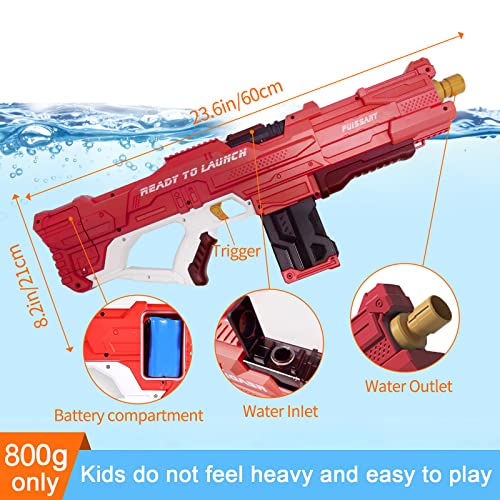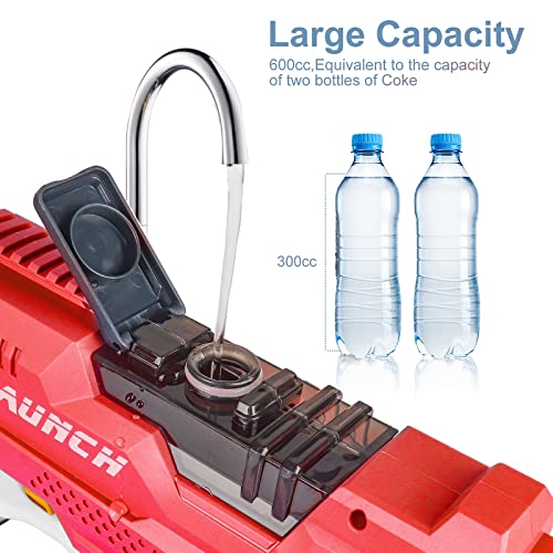 IOKUKI - مسدس مياه كهربائي اوتوماتيكي بالكامل قوي وعالي الضغط يعمل ببطارية 600 سي سي، مسدسات مياه كبيرة للأطفال والبالغين بمدى طويل - لون أحمر